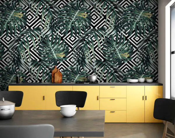 $6.48$3.89/sqftWall mural Pattern of leaves on a black and white background