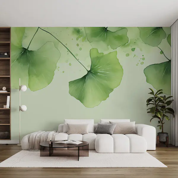 $3.65$2.19/sqftWall murals Green leaves on a white background