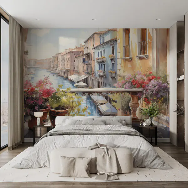 $3.84$2.30/sqftWall murals Watercolor painting of a river with a row of buildings and flowers on a balcony