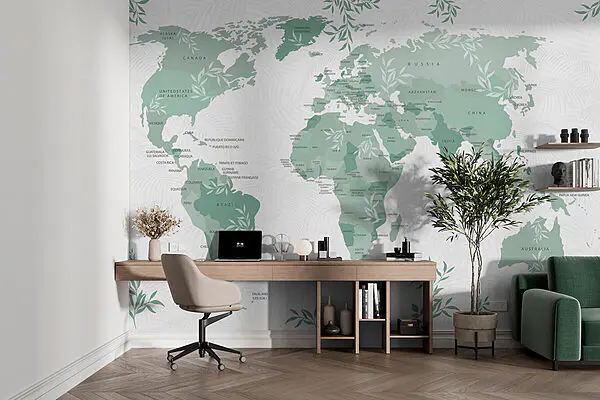 $6.48$3.89/sqftWall mural Map of the world with green leaves