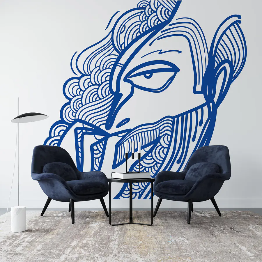 Transform your space with this captivating wall mural that features a striking drawing of a man with his hand thoughtfully placed to his mouth. It's more than just decor—it's a conversation starter, perfect for that cozy reading nook or lively living room. The bold lines and whimsical swirls add a modern touch that feels both playful and profound. Imagine curling up with a book, glancing at this mural, and getting lost in its artistic charm. It's like the character is inviting you into a world of imagination, a bit like a friendly chat over coffee. The abstract nature evokes curiosity, making each glance reveal something new. Plus, it effortlessly fits into various styles—whether you lean towards the modern or have a taste for the eclectic. Bring some character into your walls and let inspiration flourish!