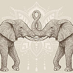 Wall murals Two elephants with their trunks touching each other