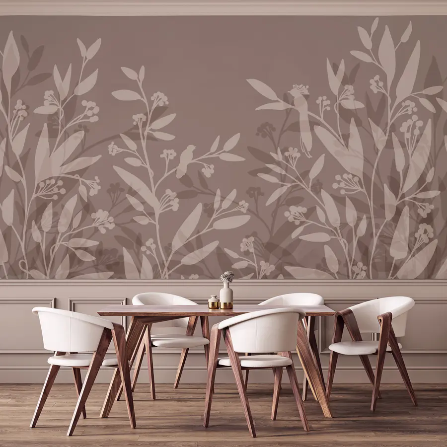 Wall murals Gentle leaf silhouettes on muted background