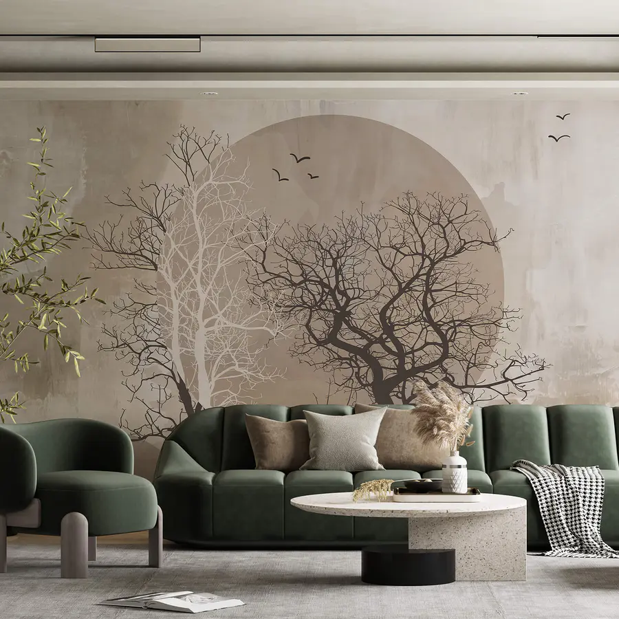Wall murals Painting of trees and a sun