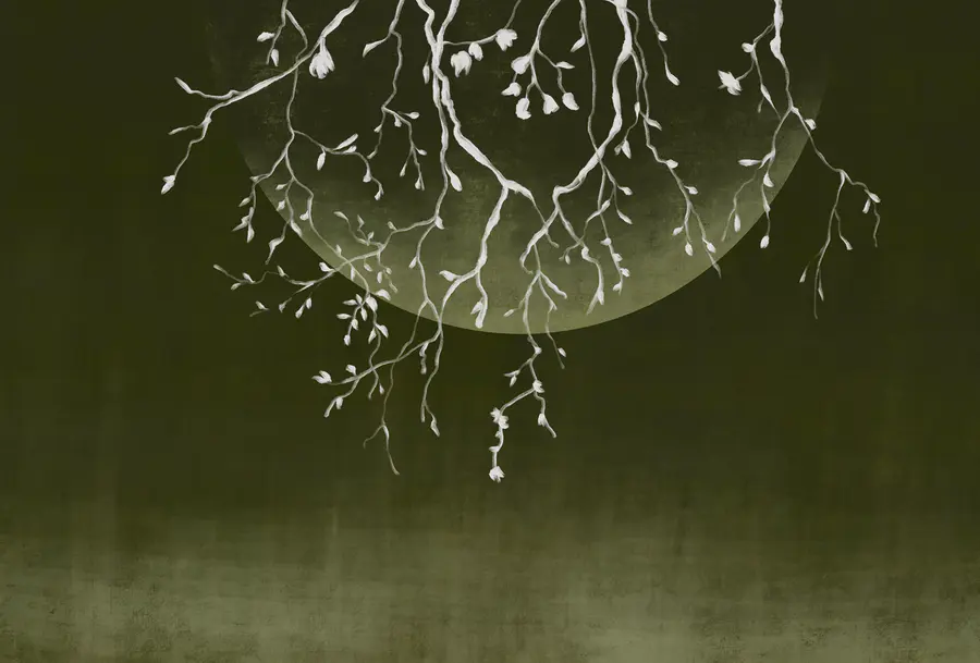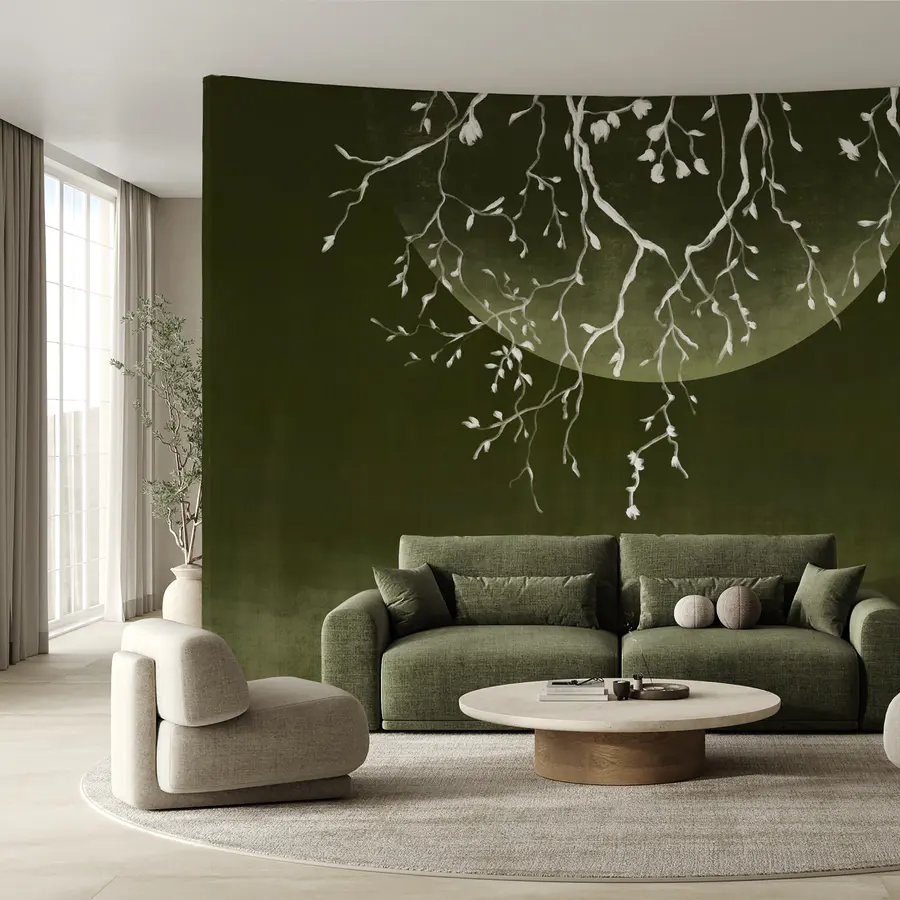 Wall mural Tree branches with leaves and a moon