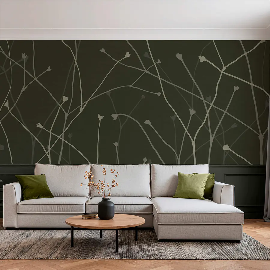 Wall murals Delicate branches on a dark backdrop