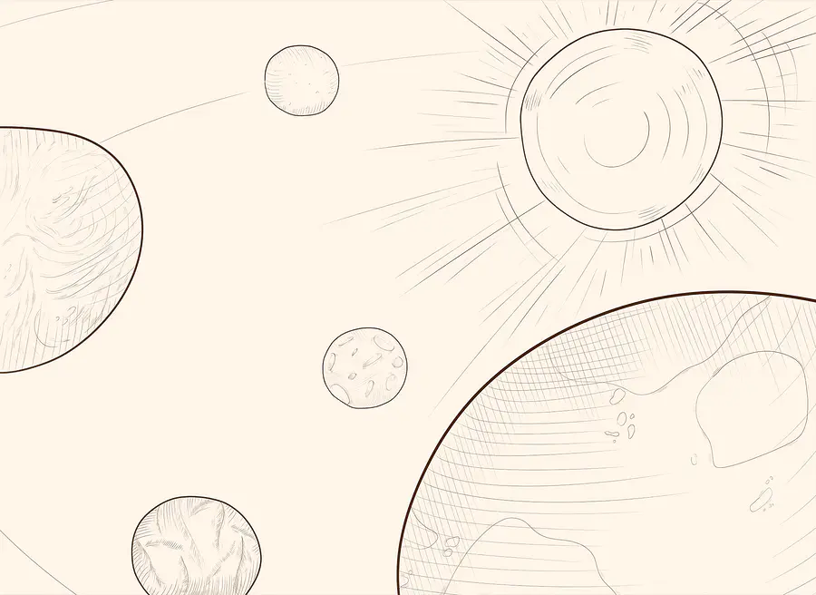 Wall mural Drawing of the sun and earth