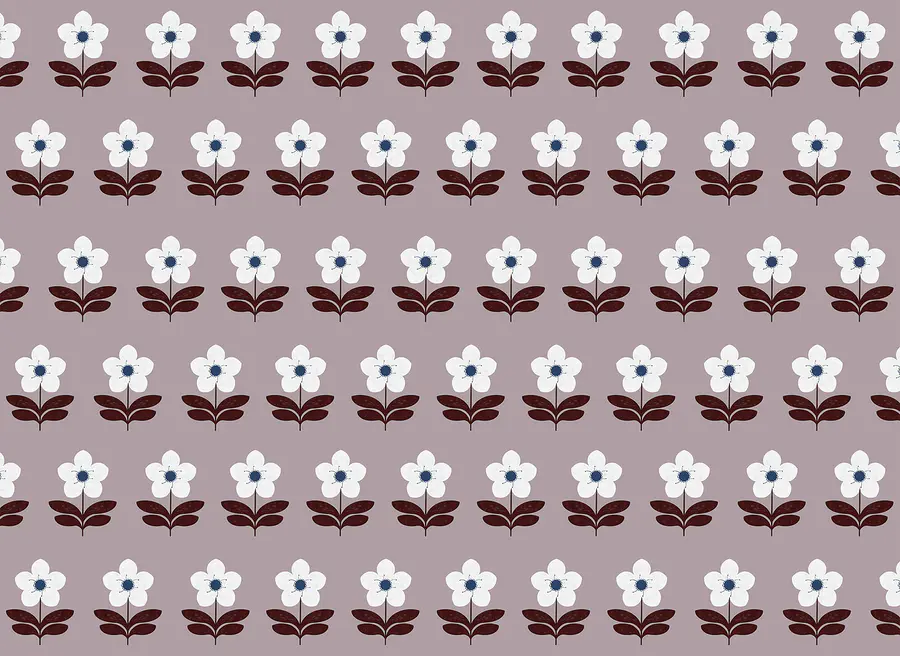 Wall murals Pattern of white flowers and brown leaves