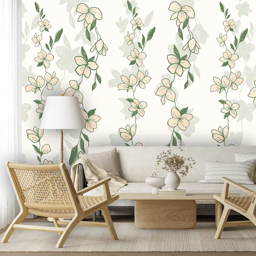 Transform any space into a cozy garden with this delightful wall mural featuring a charming pattern of flowers and leaves. Imagine walking into a room where delicate blossoms dance lazily among refreshing greens—it's like inviting spring right into your home. Perfect for a living area, bedroom, or even that little reading nook, it sets a serene vibe that makes you feel instantly relaxed. Plus, who wouldn’t want to sip coffee surrounded by such beauty? This mural isn’t just decor; it’s a little slice of nature that brings warmth and character to your walls. You might even find yourself stopping to admire it, just like you would a blooming garden.
