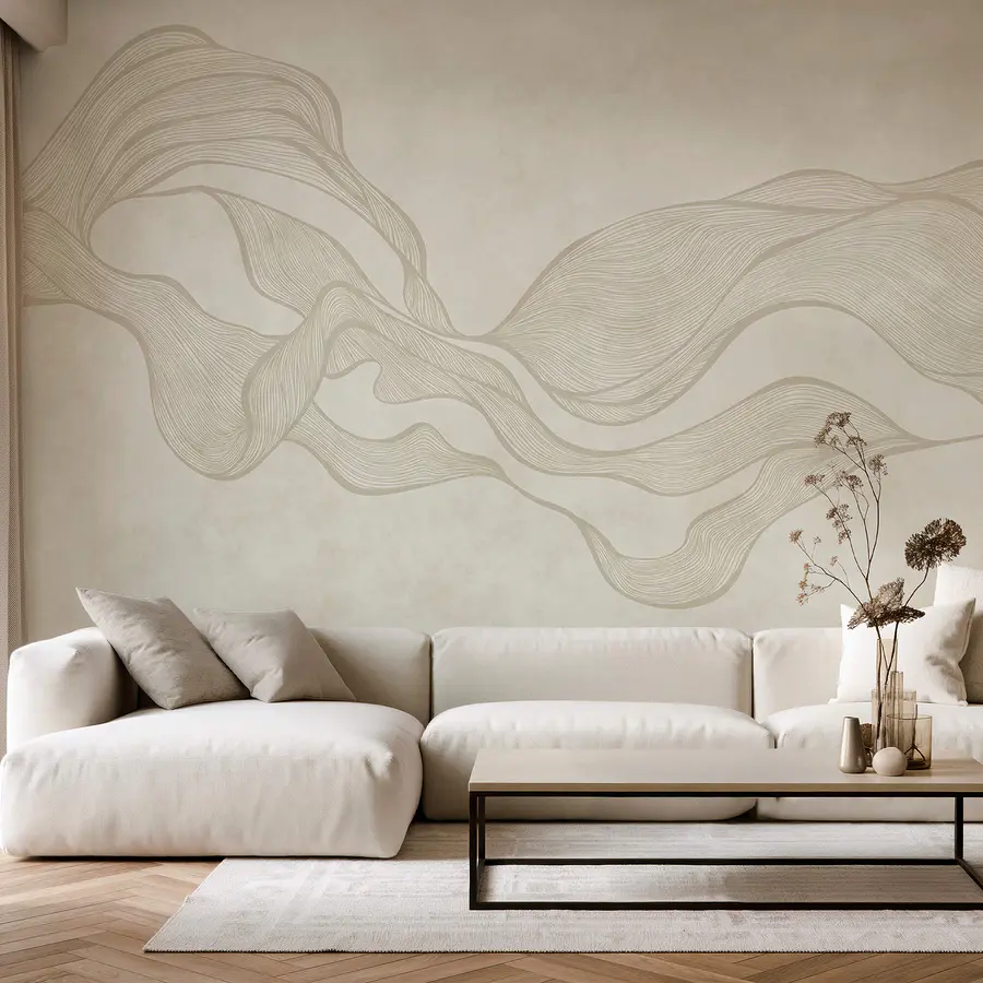 Transform any room into a cozy retreat with this mesmerizing wall mural featuring a soft, wavy pattern in white and tan. Imagine stepping into your space and feeling a gentle wave of calm wash over you. The flowing lines and soothing hues create an atmosphere that whispers serenity, perfect for a reading nook or a tranquil bedroom. It’s like having a piece of art that doesn’t just hang there but dances across your walls. Family and friends will surely notice, perhaps even inspired to put down their phones and just take in the beauty. Perfectly understated yet elegant, this mural invites creativity and relaxation—exactly what a home should feel like.