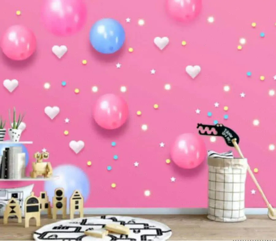 Wall murals Pink background with white and blue balloons and stars