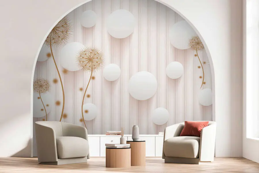 Wall murals White circles and dandelions on a white background