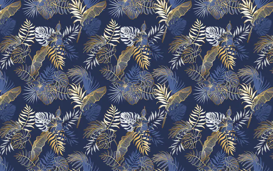 Wall murals Pattern of leaves on a blue background
