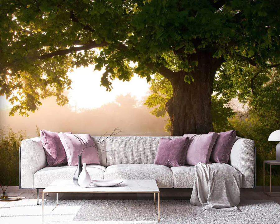 Wall murals Tree with a foggy river
