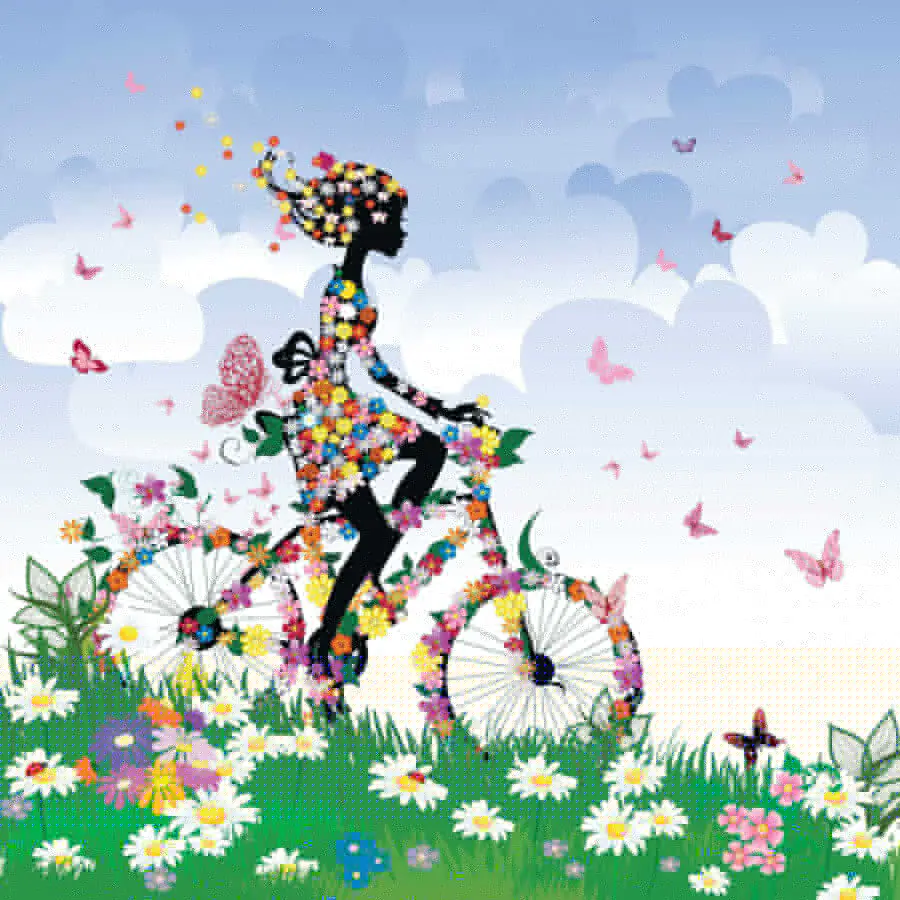 Wall murals Woman riding a bicycle with flowers