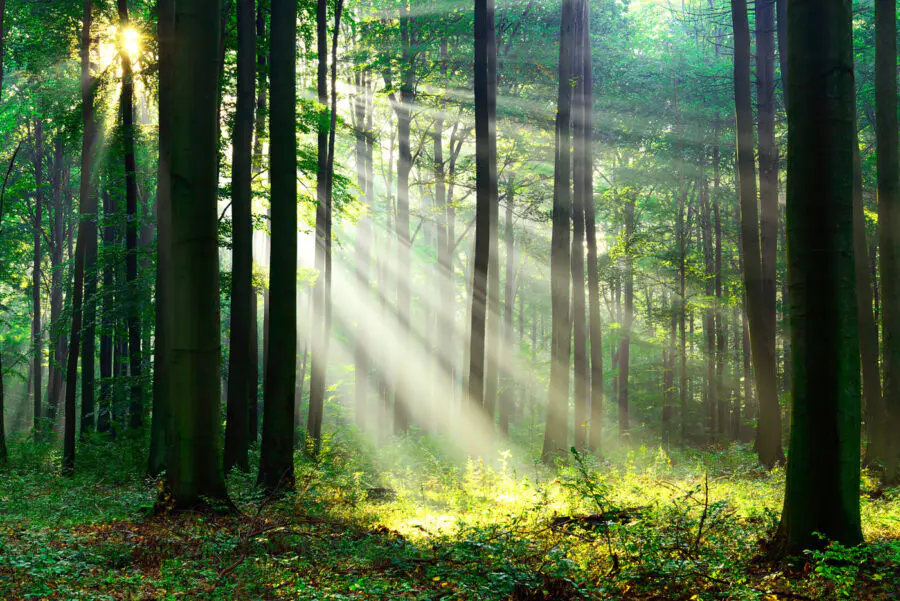 Wall murals Sunlight shining through trees