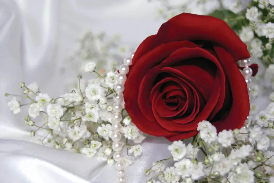 Wall murals Red rose and white flowers