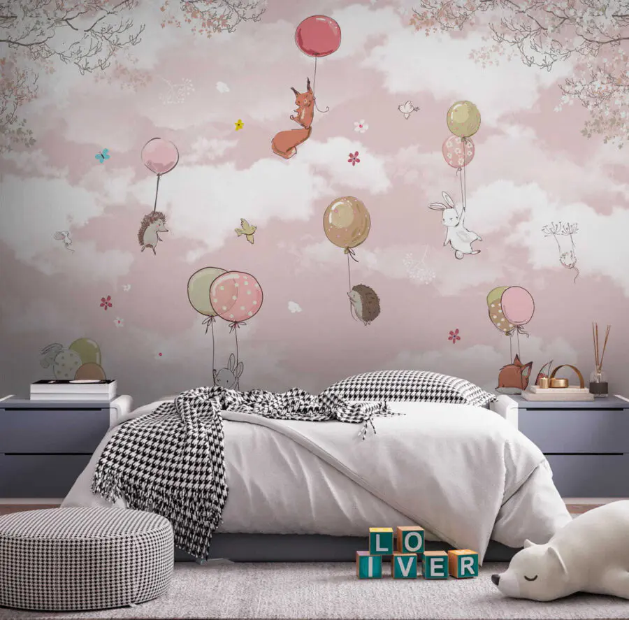 $3.65$2.19/sqftWall murals Group of pink clouds and a bunny holding balloons