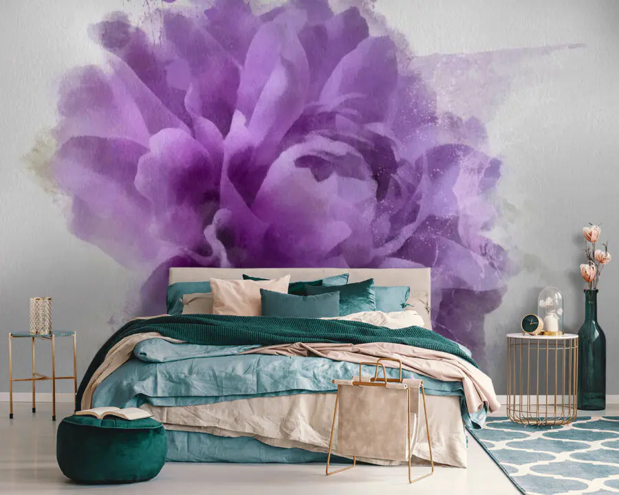 Wall murals Purple flower with paint splashes