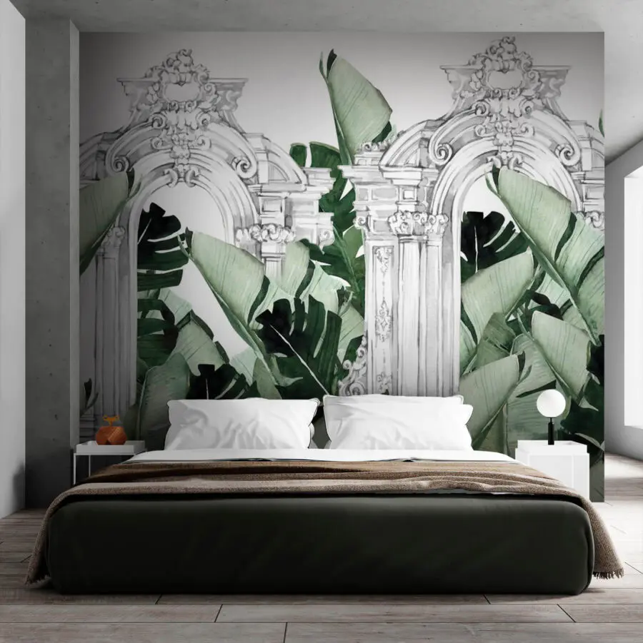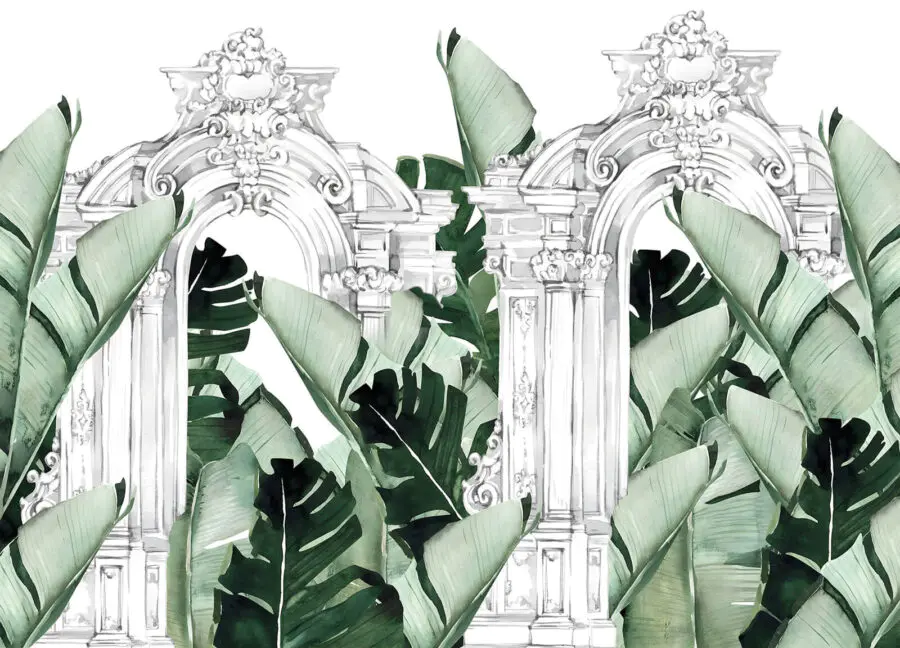 Wall murals White archway with green leaves