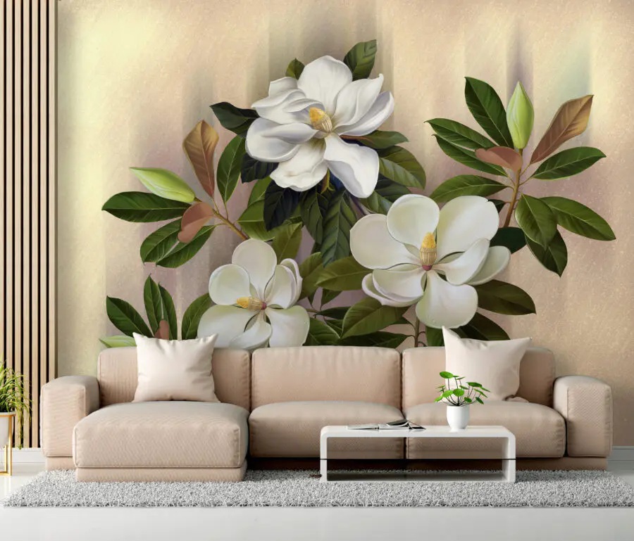 Wall murals Beautiful magnolia blooms on display