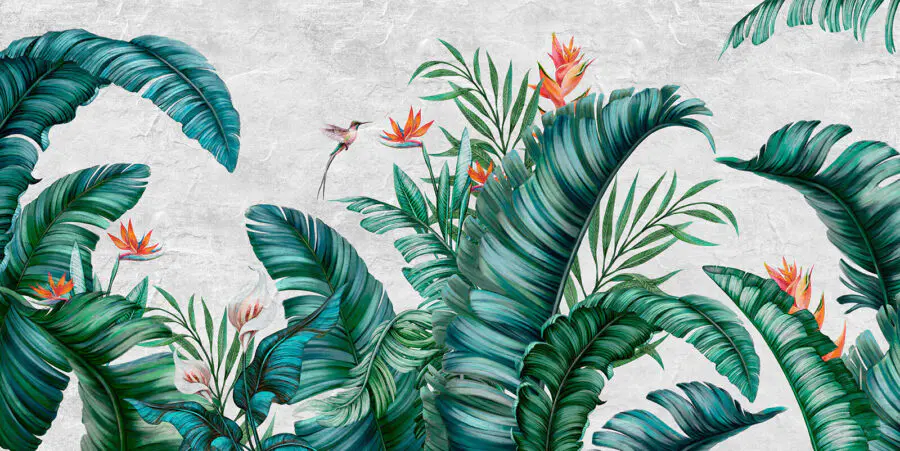 Wall murals Tropical foliage with vibrant flowers