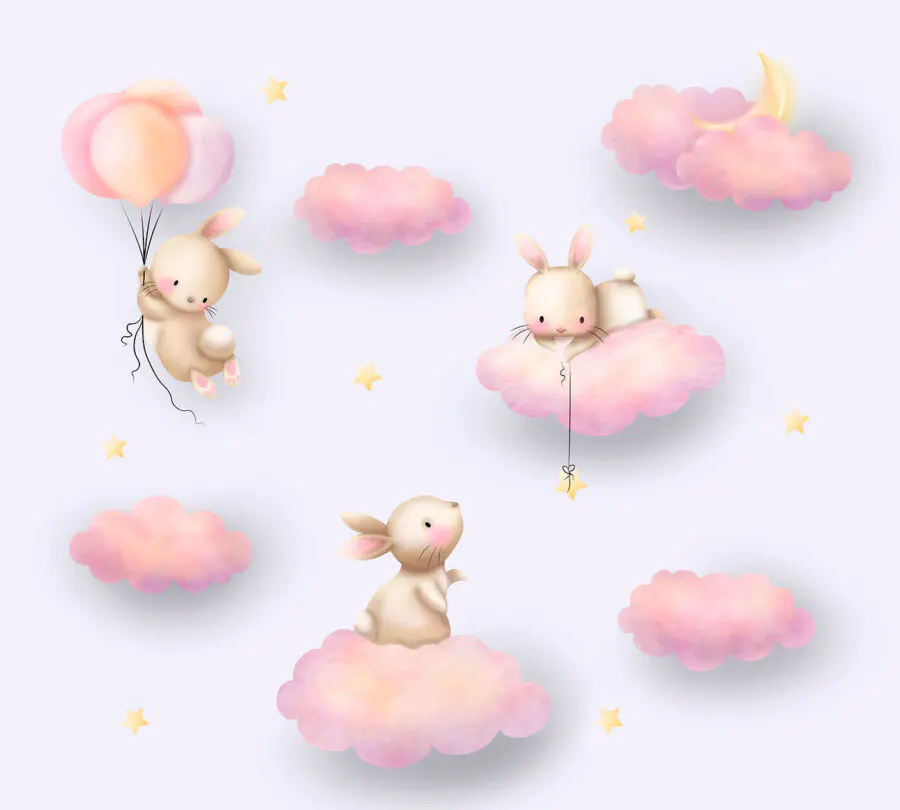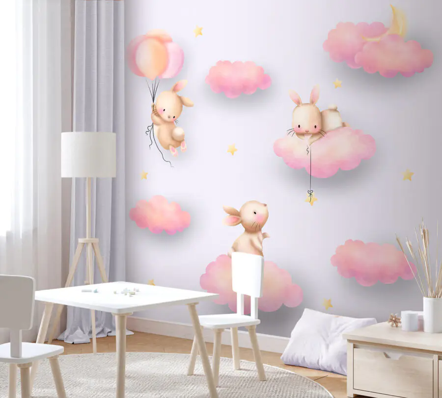 $3.65$2.19/sqftWall murals Group of pink clouds and a bunny holding balloons