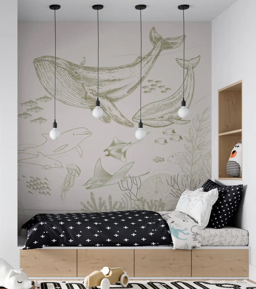 Wall murals A drawing of a whale and a whale