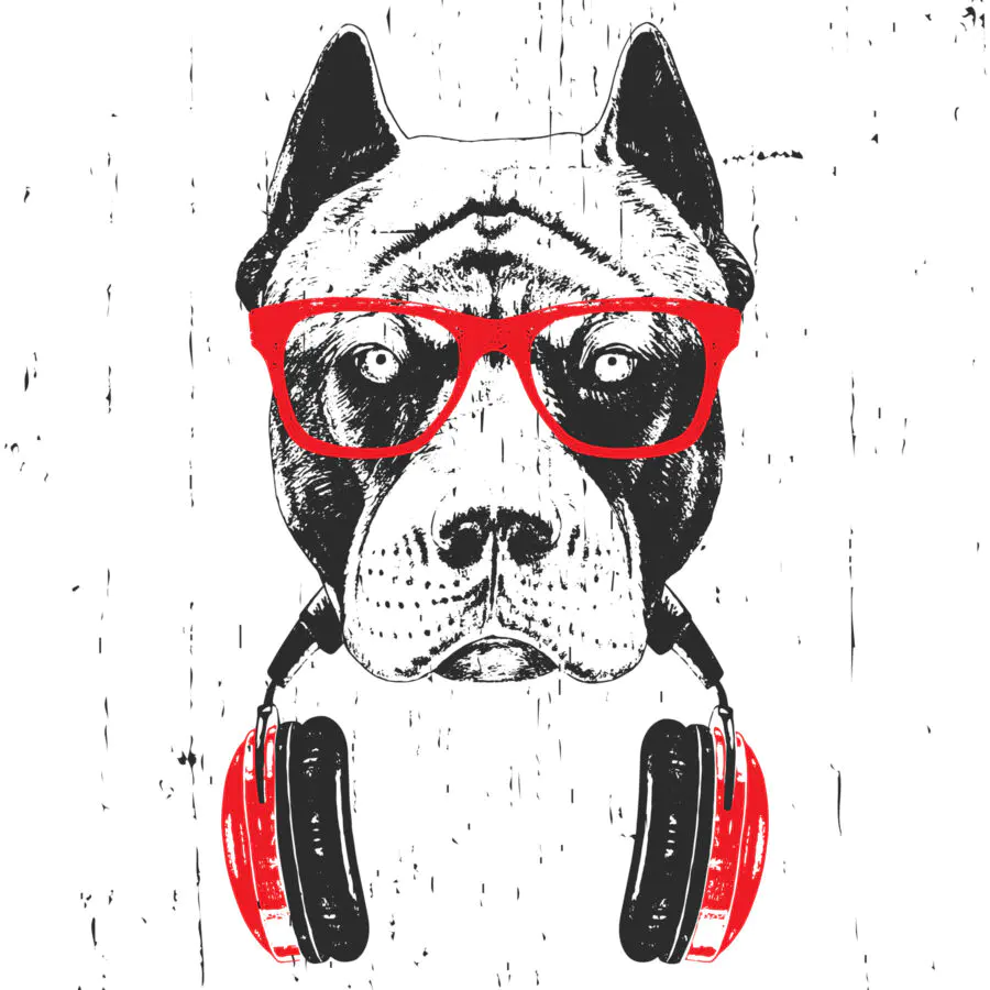 Wall murals A dog wearing glasses and headphones