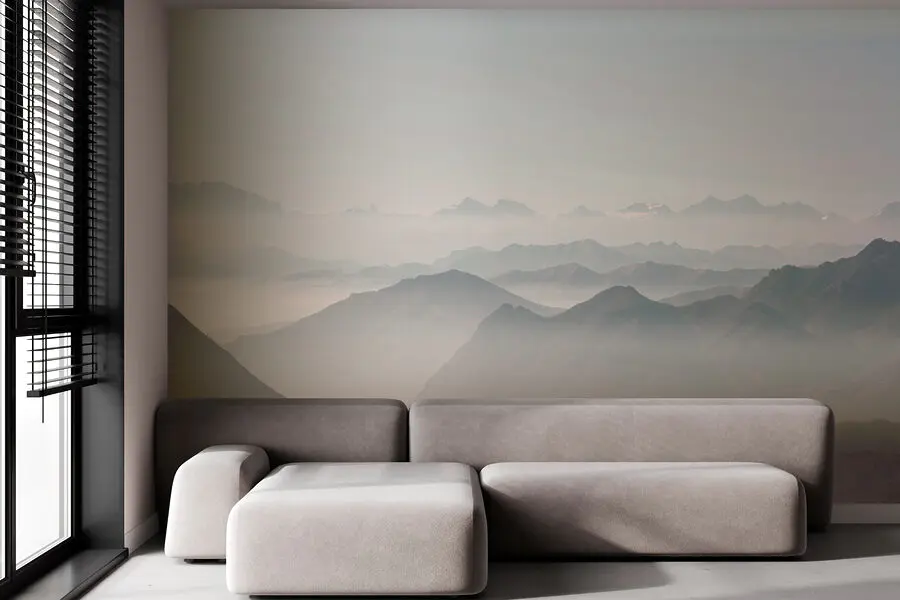 Imagine coming home after a long day and this beauty is what greets you—a serene mountain range wrapped in soft fog. It's like stepping into a daydream right in your living room. This mural's got that magic touch; it turns any plain wall into a calming retreat. Feel the misty chill and let those hazy peaks inspire your next adventure (or nap). Perfect for nature lovers and daydreamers alike. Plus, you don't even have to hike up a hill to enjoy this view. Just kick back and relax!