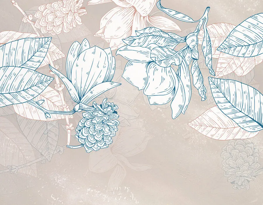 Wall murals A drawing of flowers and leaves
