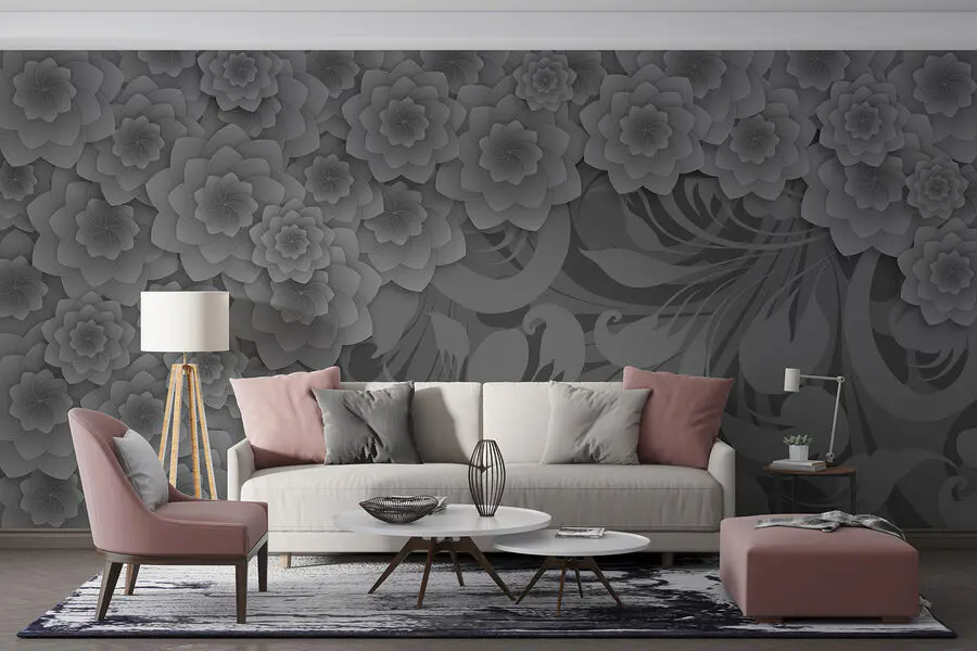 Wall murals Grey and white floral design