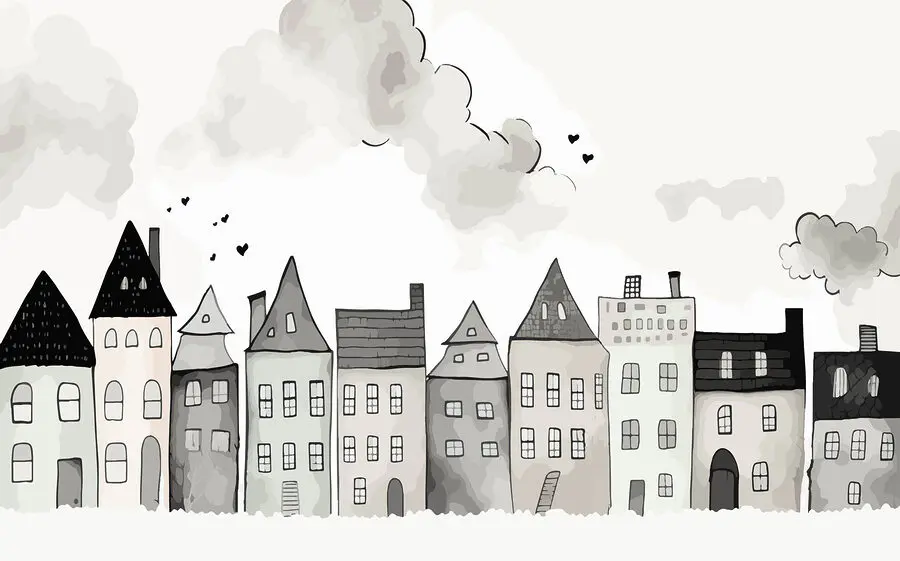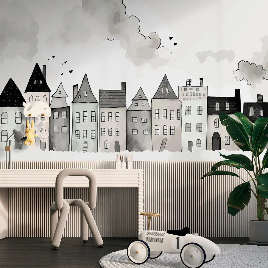 Transform any space with this enchanting mural of whimsical buildings—it's like a cozy neighborhood right on your wall! Imagine sipping coffee while gazing at these charming structures, each with its own unique character. The soft colors and playful smoke curling up add a dreamy, soothing vibe. It’s perfect for sparking conversations too. Picture friends stepping in, admiring it, and tossing around tales about the little lives each building might hold. A mix of warmth and whimsy, this mural invites everyone into a world of imagination. Perfect for those who crave a unique twist in their decor!