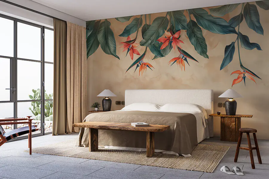 Imagine bringing a touch of tropical magic into your room with this stunning mural—it's like a mini-vacation on your wall! Those oversized leaves and vibrant blooms make any space feel like a lush jungle hideaway. Perfect for plant lovers and dreamers alike. Picture sipping your morning coffee, surrounded by nature’s finest without stepping outside. It’s a breath of fresh air and a splash of color, wrapping your room in tranquility and a dash of adventure. Ideal for adding some whimsical flair to your day!