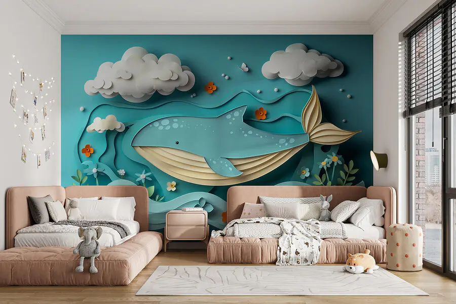 Dive into whimsy with the "Paper Cut Whale in the Ocean" mural! Imagine a gentle giant cruising through waves, surrounded by playful clouds and cheeky flowers. This piece adds a splash of 3D magic to any room, like having a mini ocean escape right at home. Feel the calming sea breeze—or at least pretend to, between sips of your morning coffee. Perfect for those who dream of adventure, without leaving their cozy couch. Who knew decorating could be this much fun? Dive in, relax, and let the good vibes roll!