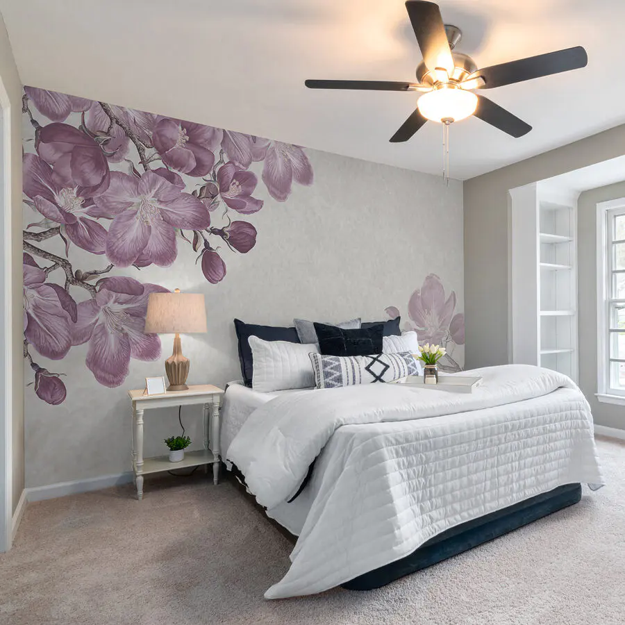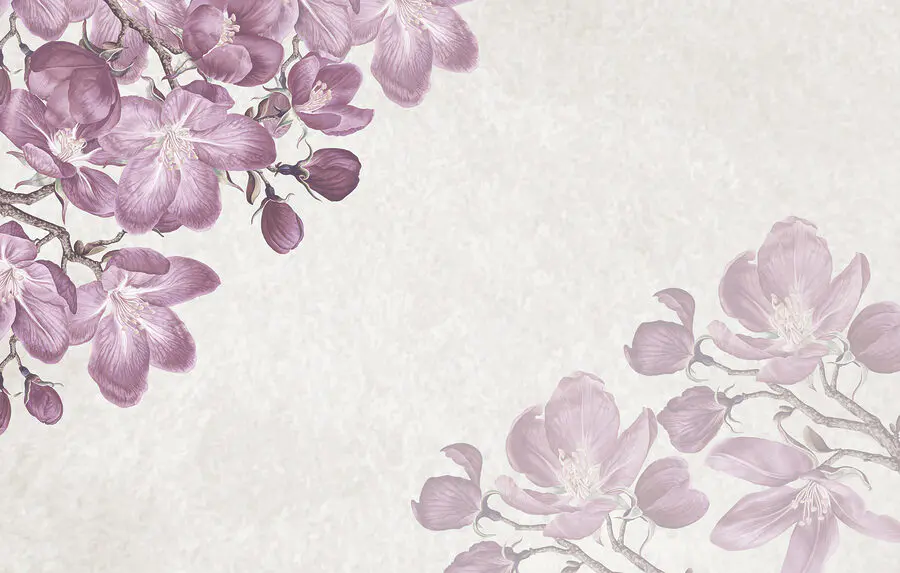 Transform your space with this stunning wall mural featuring delicate purple flowers set against a soft white background. Imagine waking up to this lush scene—it’s like bringing a garden inside without the pesky pollen! The floral vibes are perfect for brightening any room, whether it's a cozy reading nook or a lively dining area. Friends might just swoon when they see it. Seriously, who wouldn’t want to chat over tea surrounded by such beauty? Let the soothing colors wrap you in a gentle embrace, creating a relaxed vibe that's simply irresistible.
