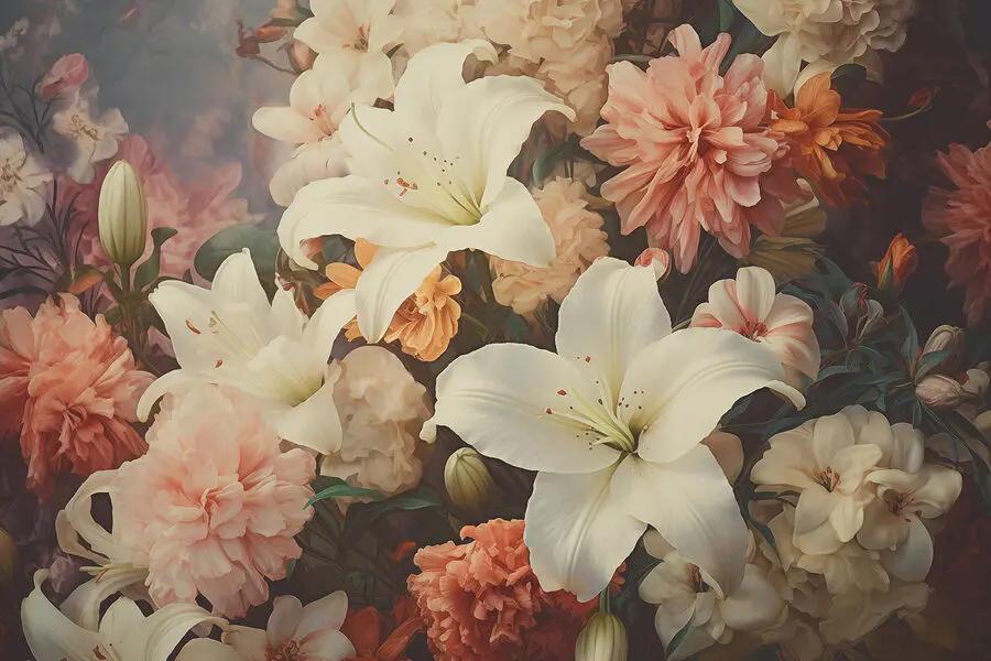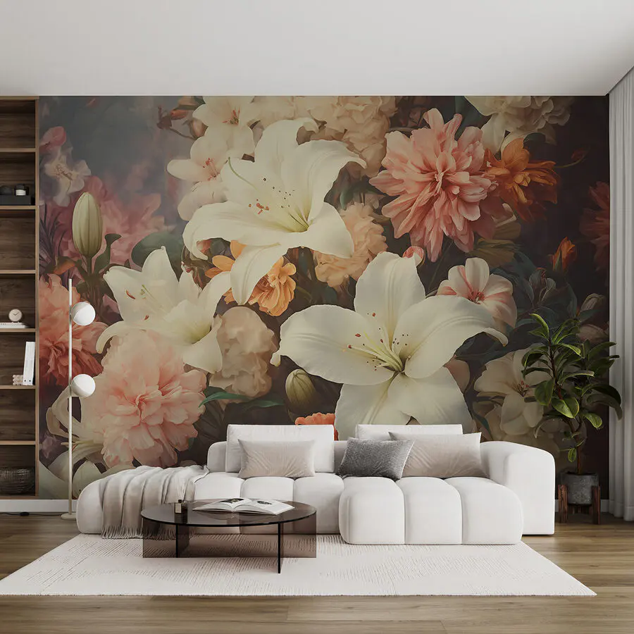Transform your space with this stunning wall mural, "Group of Flowers in a Bouquet." Imagine the soft colors dancing on your walls, a blooming masterpiece that’ll make you feel like you're walking through a garden every day. This design pops with beautiful lilies and peonies, and let’s be honest, who doesn’t love a touch of nature indoors? It’s like bringing fresh flowers to your home—without worrying about watering them! Perfect for adding a splash of charm to your living room or making that cozy reading nook just a bit dreamier. Get ready for compliments and maybe even small garden-themed dance parties. Who knew wall decor could bring such joy?