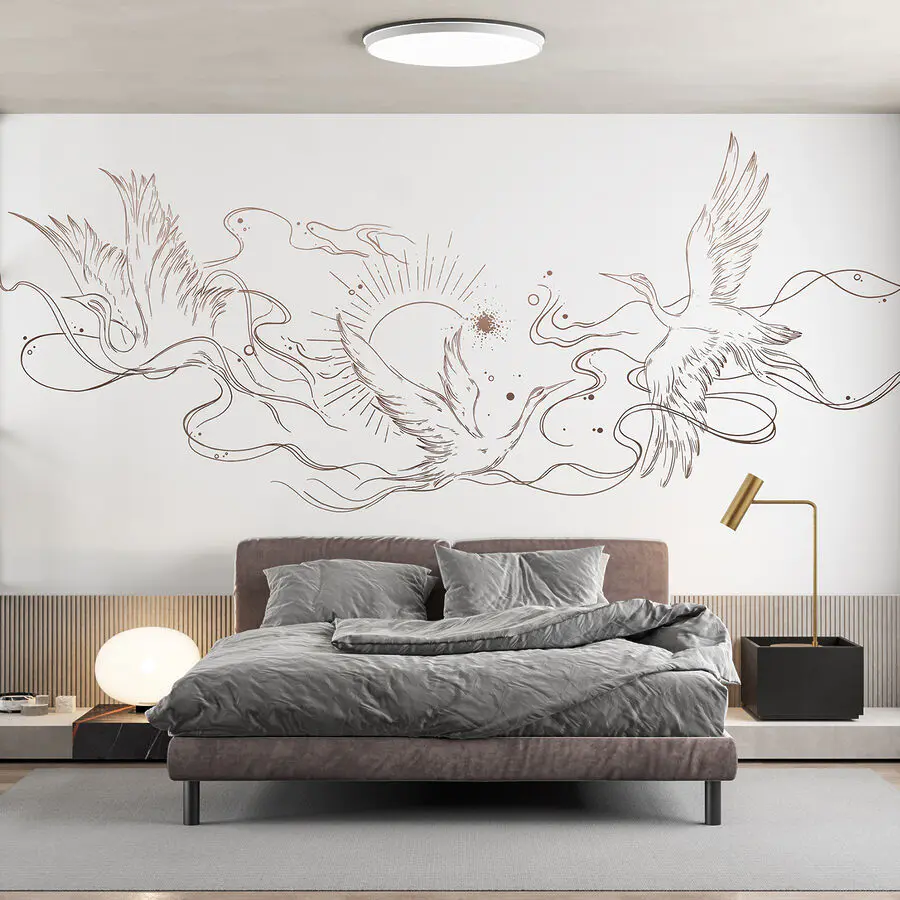 Wall murals Drawing of birds and sun