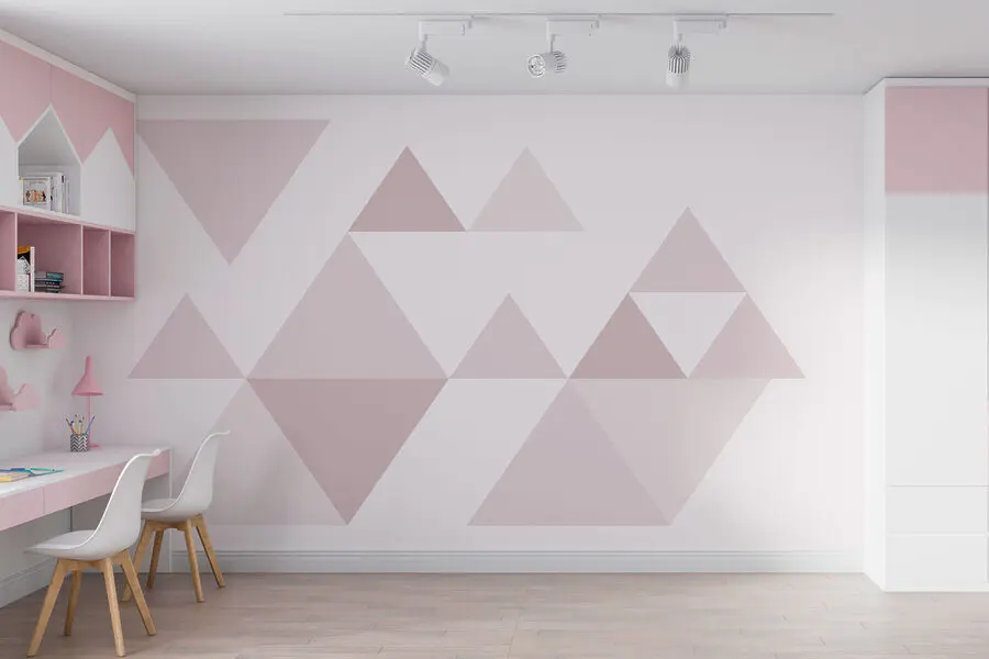 Transform your space with this playful wall mural, "Group of Triangles in a Row." Imagine walking into a room that feels instantly more vibrant. These triangles dance across the wall, each one whispering a little secret of modern design. Perfect for those who love geometric decor, this mural brings a touch of whimsy without overwhelming the senses. It's like giving your walls a stylish outfit—one that makes guests pause, smile, and maybe even do a double-take. Whether it’s your cozy reading nook or a lively office space, this mural adds depth and character, sparking conversations and creativity. Plus, who doesn't love a bit of simplicity that still makes a statement? Perfect for getting those good vibes flowing!