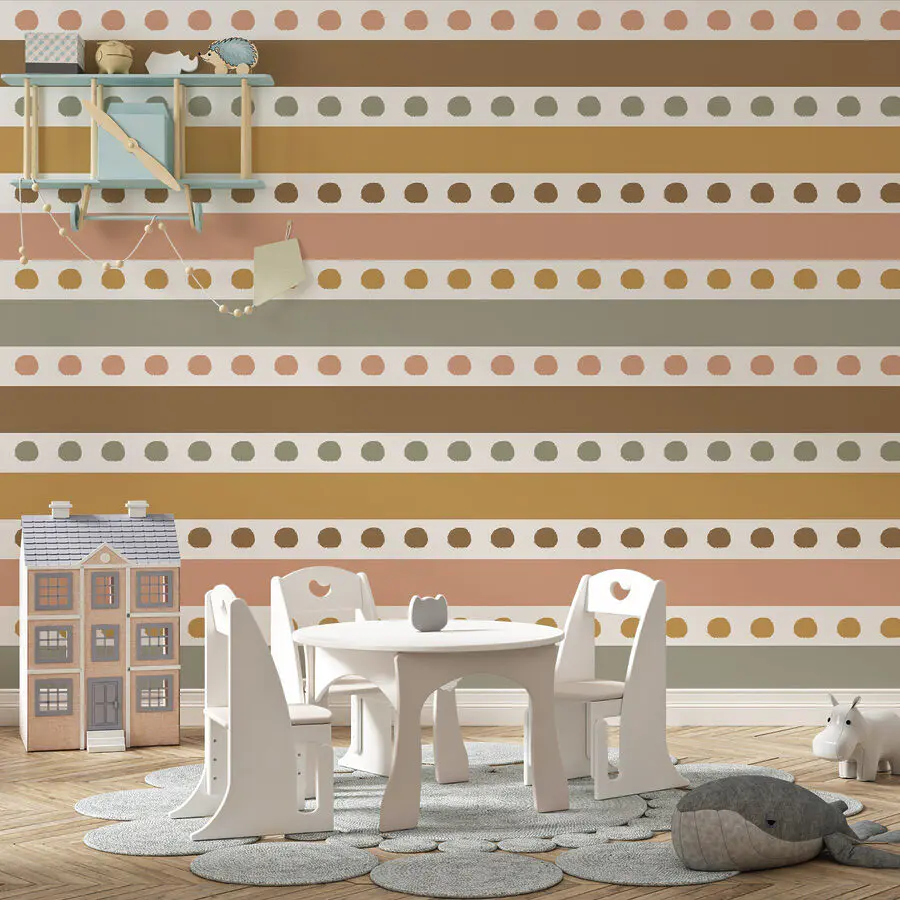Transform any room with this quirky wall mural featuring playful rows of colorful dots. It’s like a burst of joy captured in a pattern! Imagine walking into a space adorned with soft, earthy tones that evoke a warm, inviting vibe. This design strikes a perfect balance between modern elegance and a touch of fun—just the thing to spark a conversation. Whether it’s in a cozy living room or a trendy cafe, this mural brings an instant upgrade. It’s sure to get everyone smiling, and who doesn’t love a little splatter of joy in their life?