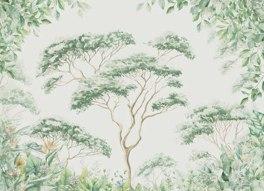 Transform any room into a serene escape with this enchanting wall mural of trees and plants. Imagine sipping your morning coffee surrounded by a lush, green oasis—sounds dreamy, right? Each tree is like a gentle reminder of nature’s calm. The watercolor style adds a soft touch, making it perfect for cozy corners or lively gathering spots. Plus, it’s like having a mini forest indoors without the dirt or bugs! Friends will whisper about how 'nature-friendly' your space feels. Bring the outdoors in, and who knows, maybe a little rabbit will hop by for a visit!
