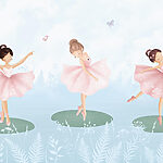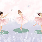 Wall murals Group of girls in pink tutu dancing on lily pads