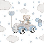 Wall murals Teddy bear driving a car with balloons