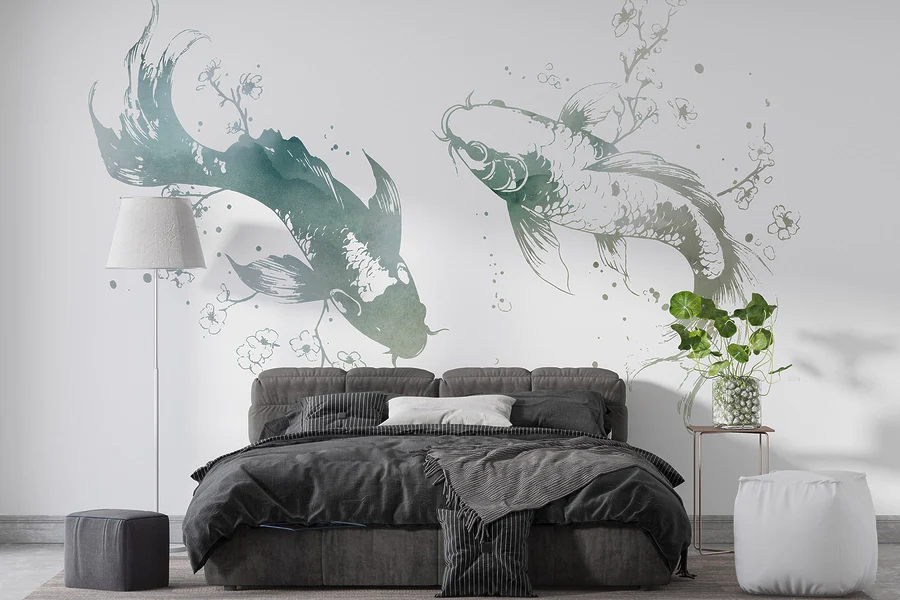 Wall murals Two fish with flowers and leaves