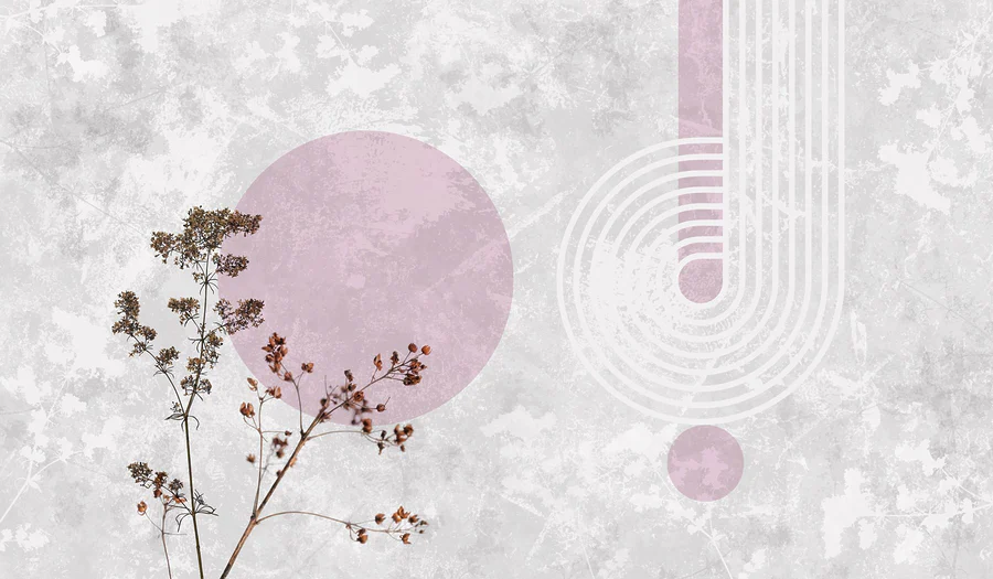 Wall murals Plant with brown leaves and purple circles