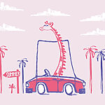 Transform any space into a whimsical getaway with this stunning mural featuring a giraffe cruising in a vibrant red car. Picture this: summer vibes, palm trees swaying gently in the breeze, and a goofy giraffe peeking out, ready for an adventure. It adds a dash of fun to your walls, sparking conversations as visitors wonder how on earth that giraffe learned to drive. Perfect for a child's room, a playful office, or anywhere that could use a splash of joy. This mural simply makes you smile, welcoming a light-hearted spirit into your home. Who wouldn’t want their walls to tell such a delightful story?