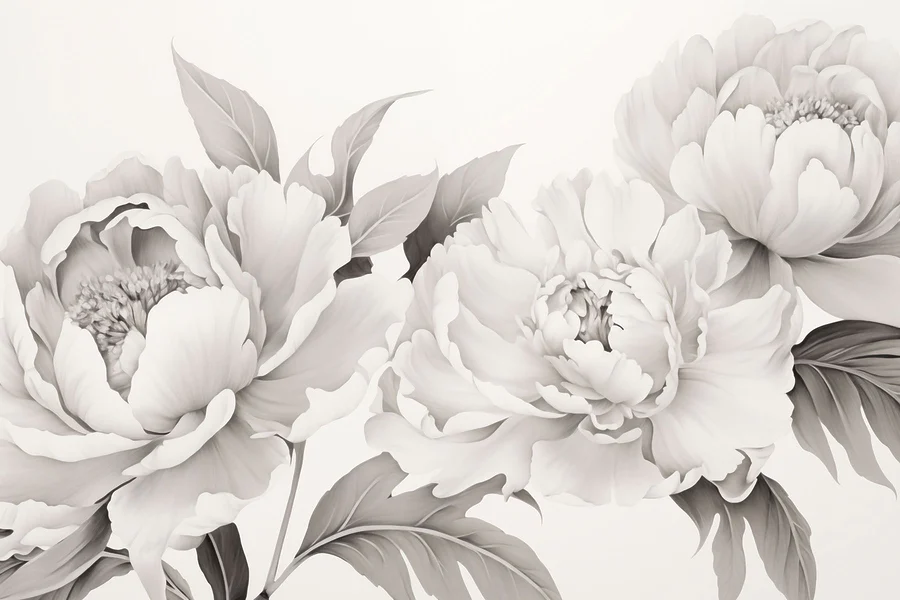 Wall murals Floral beauty in monochrome elegance