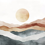 Wall murals Painting of mountains and sun
