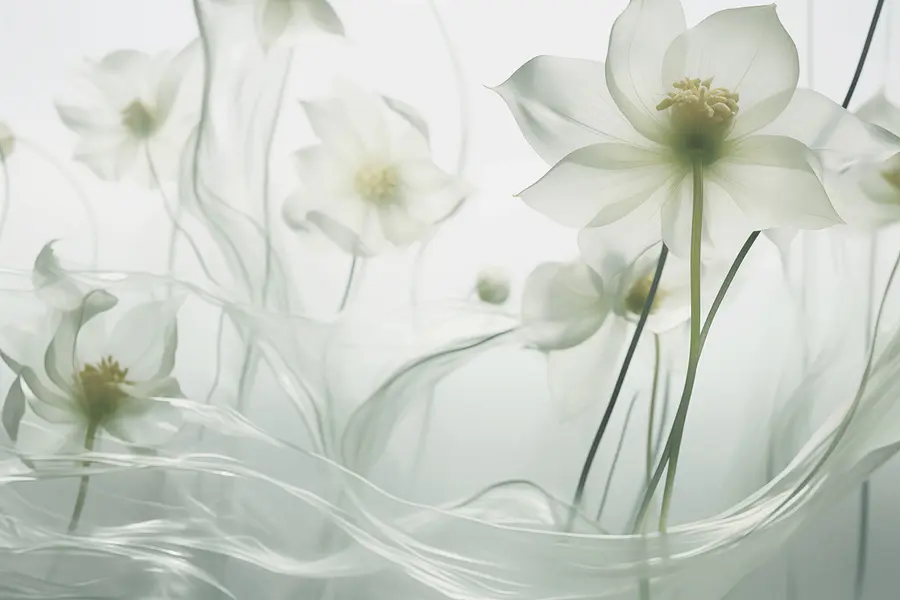 Wall murals White flowers with long stems and stems