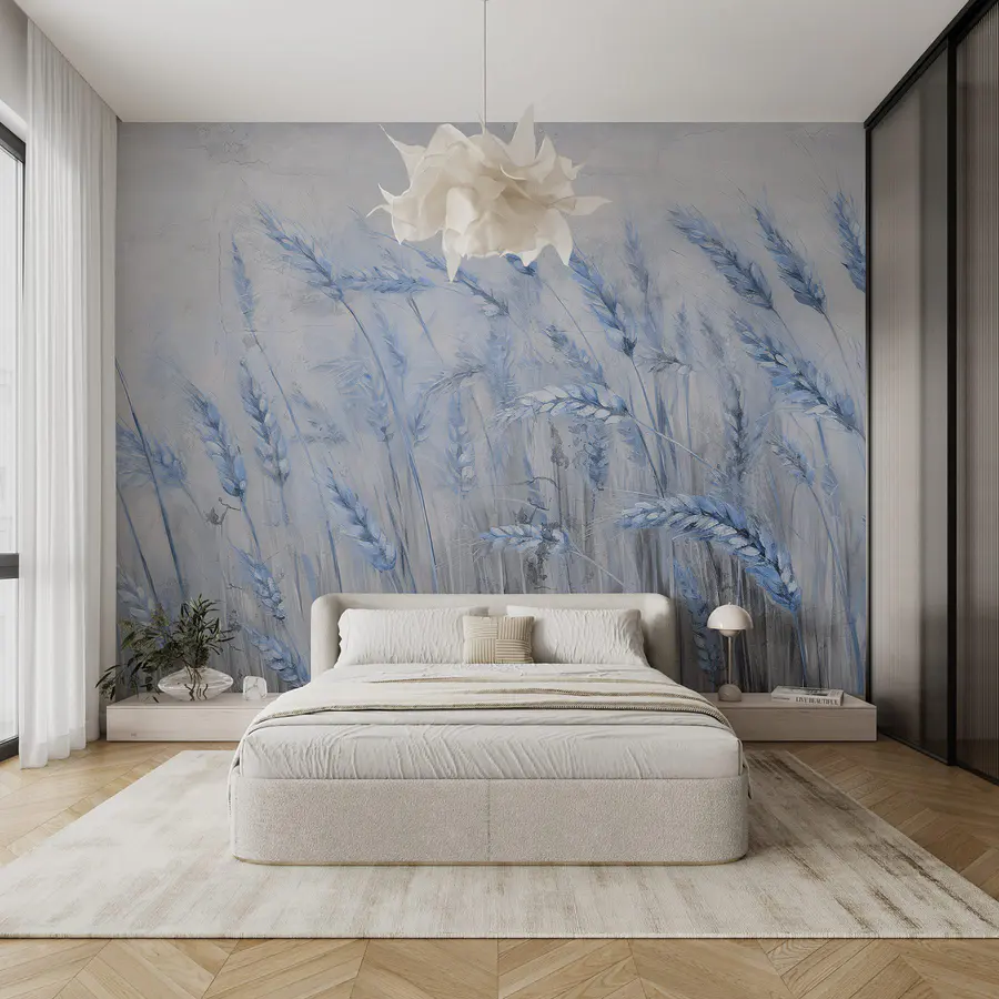 Wall murals Soft blue waves of gentle wheat